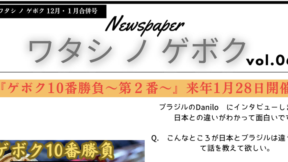 『ゲボク10番勝貸〜第2番〜』来年1月28日開催! ブラジルのDanilo のインタビューが凄く面白かったので、しばらくシリーズ化します(笑) 『ゲボク10番勝負』 1月28日(日)お客様は入場無料です